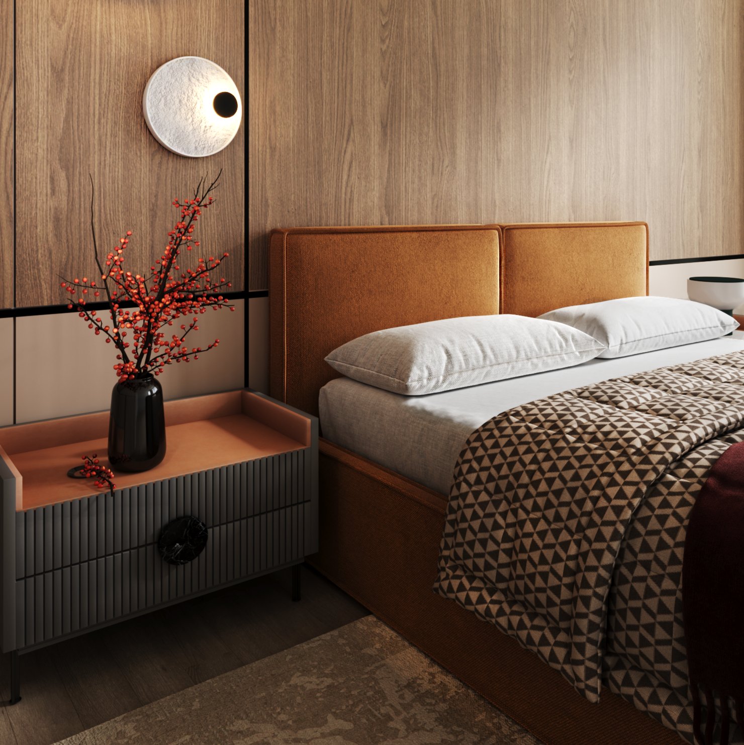 - Разнообразие оттенков и фактур обивки позволяет создать спальню с индивидуальным завершенным образом.