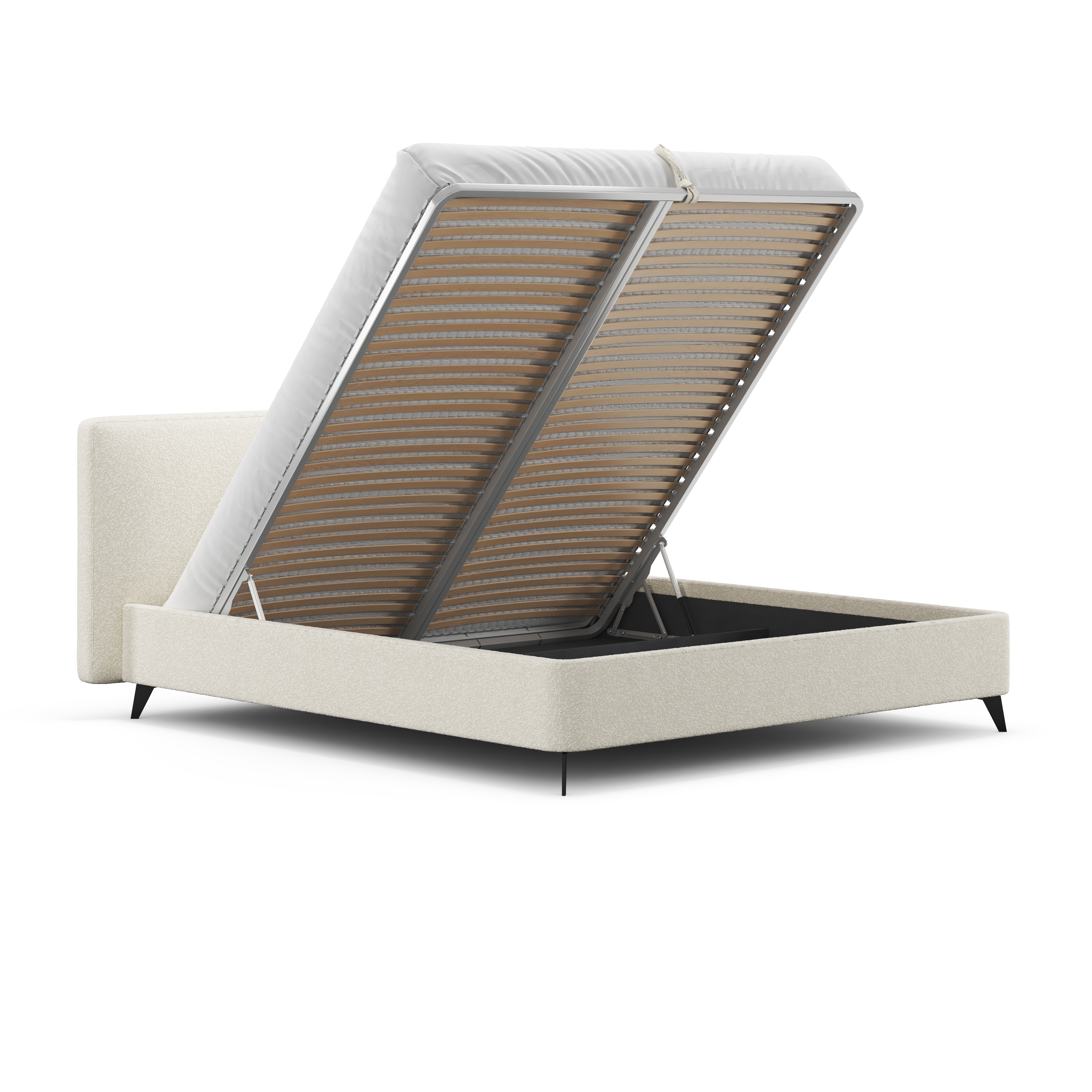 Но главной изюминкой является подъемный механизм, открывающий доступ к вместительному отделению для хранения вещей (оно есть даже в варианте на ножках!). Теперь вы можете рационально использовать пространство спальни и упорядоченно хранить постельное белье и сезонные вещи. Турецкие премиальные амортизаторы подъема обеспечивают плавное и бесшумное открывание и позволяют фиксировать положение в любой точке хода.
