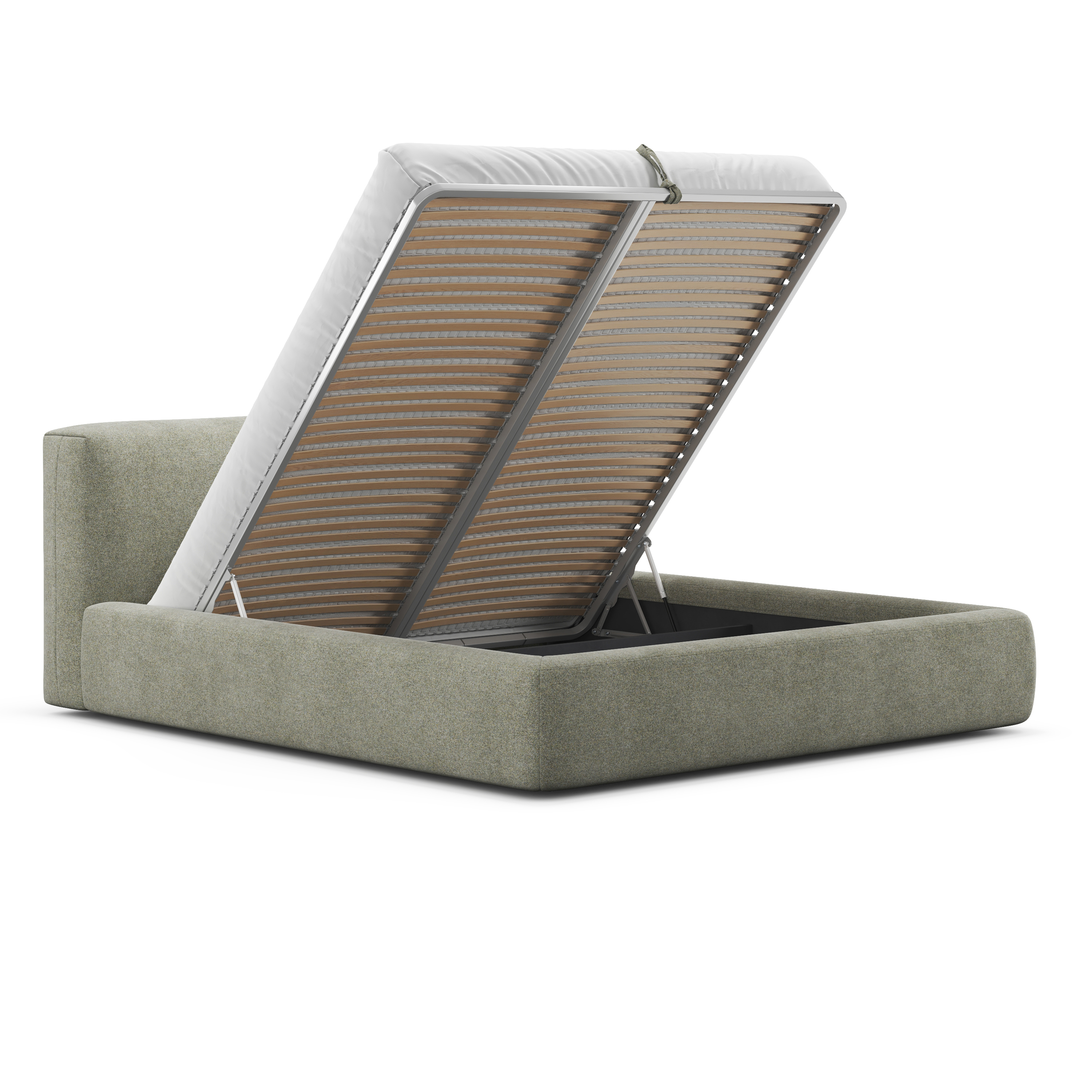 Но главной изюминкой является подъемный механизм, открывающий доступ к вместительному отделению для хранения вещей (оно есть даже в варианте на ножках!). Теперь вы можете рационально использовать пространство спальни и упорядоченно хранить постельное белье и сезонные вещи. Турецкие премиальные амортизаторы подъема обеспечивают плавное и бесшумное открывание и позволяют фиксировать положение в любой точке хода.